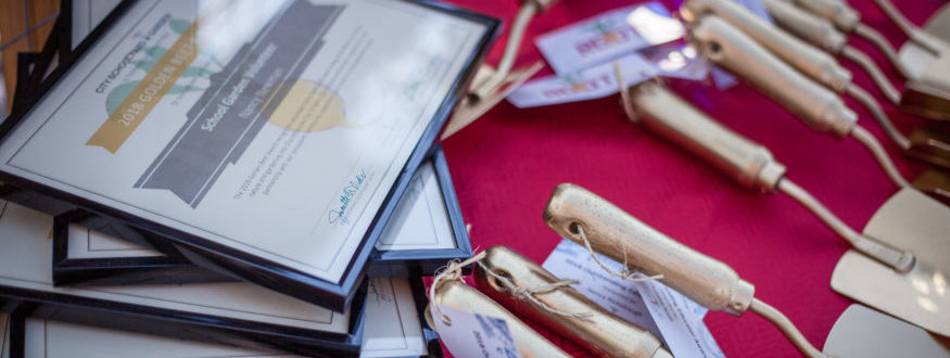 On April 12th, City Schoolyard Garden hosted Root! at Jackson-Via Elementary to honor and recognize the contributions of our partners in education and in the community. Those who have gone above and beyond in support of the gardens were awarded Golden Trowels and Golden Beets. The sunny evening, although very blustery, was a beautiful way to spend time showing appreciation for our partners and volunteers in the community.
